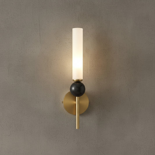 Brass Wall Light | Vertical Cylinder Sconce in Brass & Marble