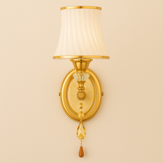 Art Deco Wall Light | Classic Wall Lamp with White Pleated Fabric Shade and Crystal Pendant