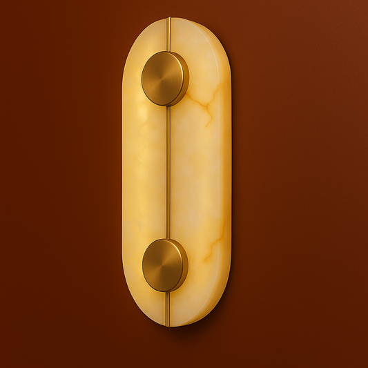 Art Deco Wall Light | Natural Marble Sconce with Antique Brass Finish and Warm LED Glow