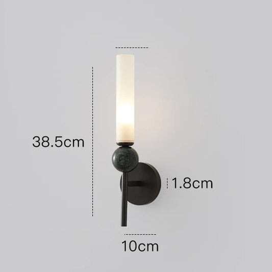 Art Deco Wall Light | Natural Marble Cylinder Sconce with Copper Base for Bedroom and Living Room
