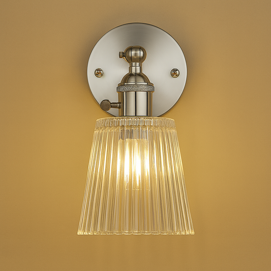 Art Deco Wall Light | Tall Tapered Shade Sconce with Ribbed Stem and Round Backplate