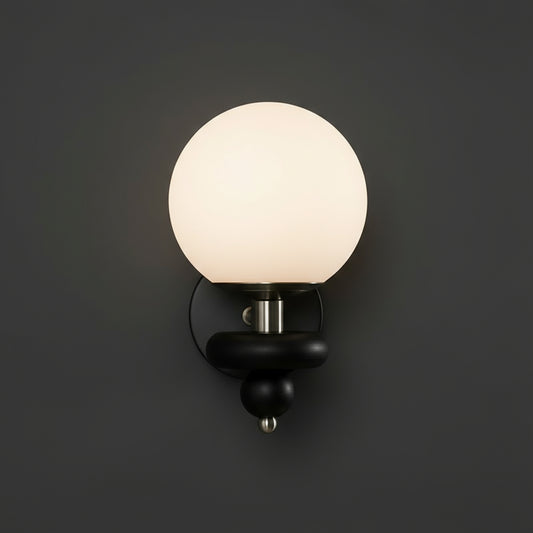 Contemporary Wall Light | Frosted Glass Globe Sconce with Metal Base