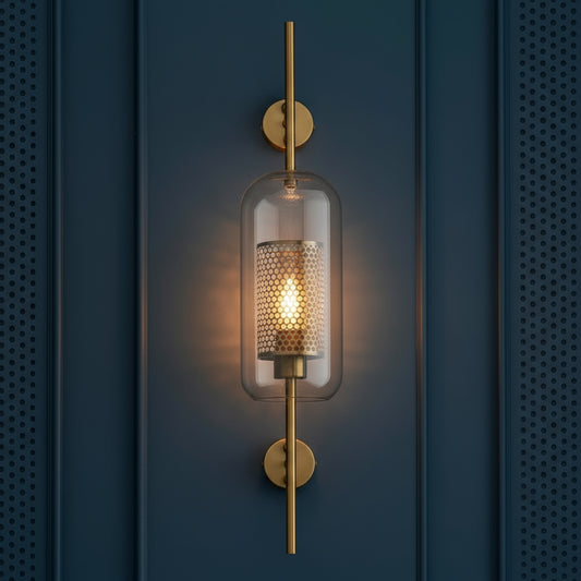 Industrial Wall Light | Brass Rod Sconce with Glass Cylinder Shade