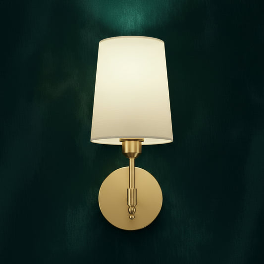 Stick-On Rechargeable Wall Light | Vintage Black and Gold Sconce with Fabric Shade