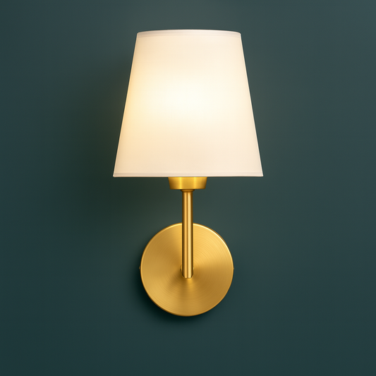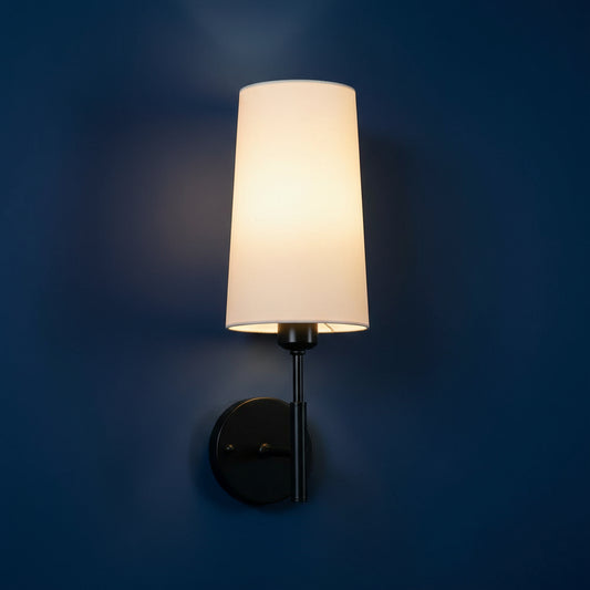 Rechargeable Wall Light | Slim Sconce with Cylindrical Arm and Tapered Fabric Shade