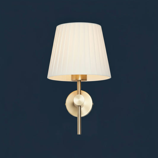 Rechargeable Wall Light | Arched Brass Sconce with Pleated Fabric Shade