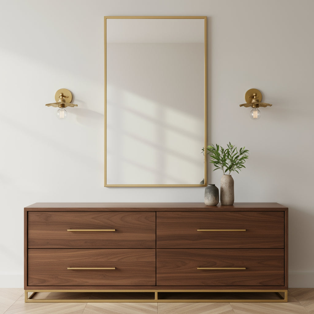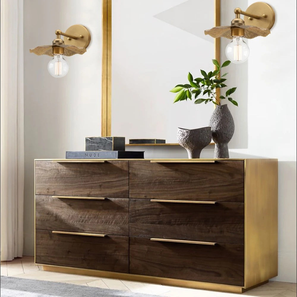 The sculpted brass shade and exposed bulb design bring character and warmth, turning any wall into a statement piece.