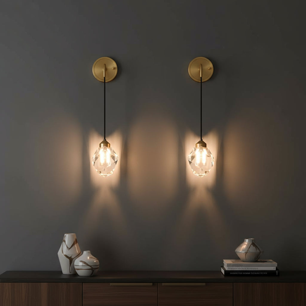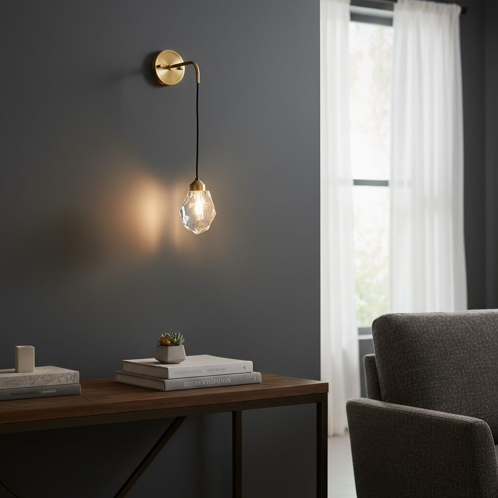 When lit, the crystal shade creates a warm and inviting atmosphere, while the golden base adds a refined accent to your wall. Ideal for bedside, reading corners, or dining spaces, it turns simple moments into stylish experiences.