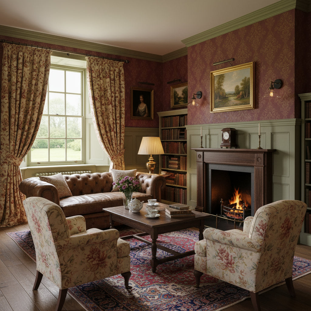 Paired wall sconces accentuate a cozy living room with antique décor, blending soft light and timeless charm for warm sophistication.