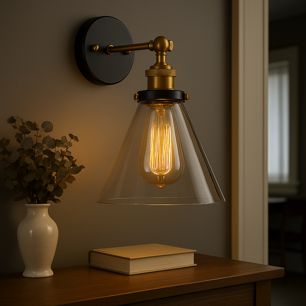 The clear glass shade and vintage bulb create a cozy, inviting glow while adding a touch of industrial chic to your bathroom, hallway, or living space.