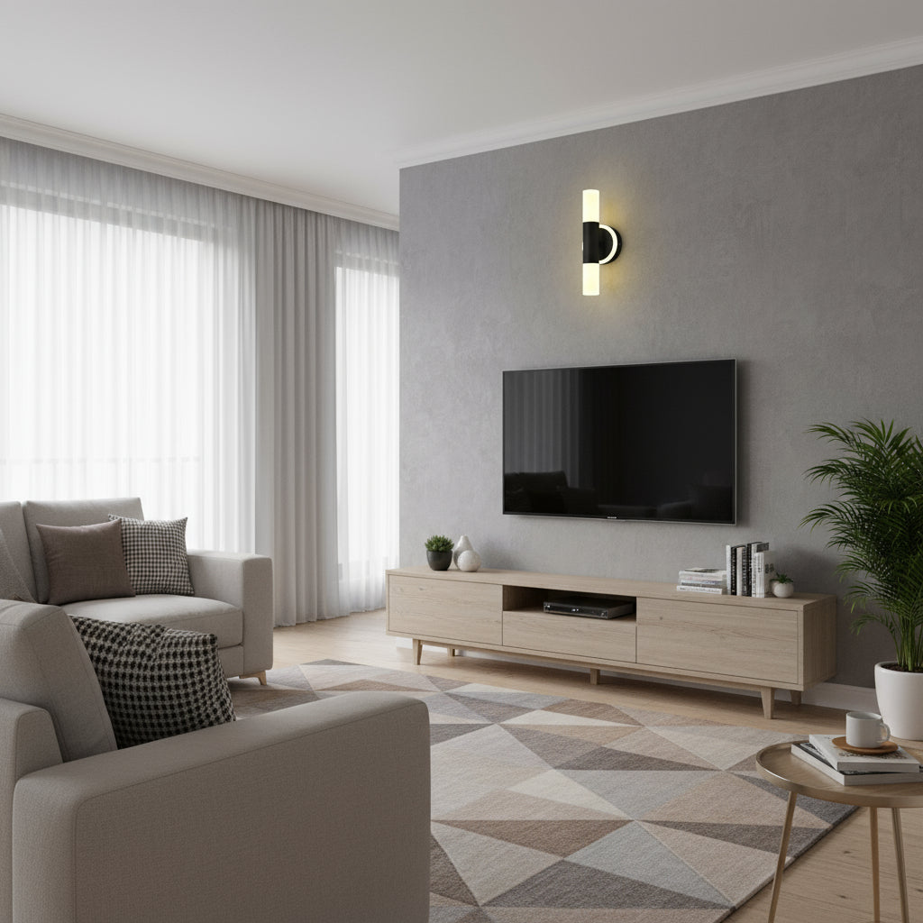 With its vertical double-ended design, this wall sconce creates balanced illumination and a refined modern atmosphere.