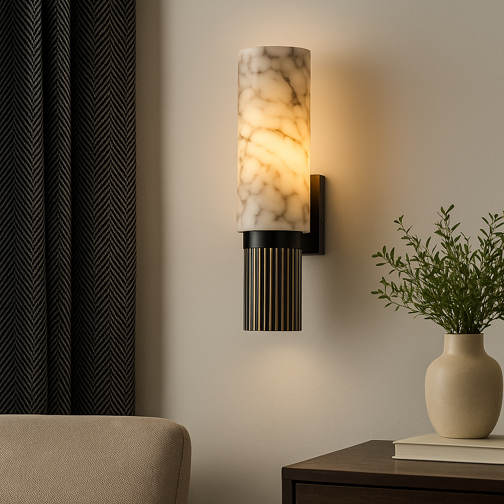 This wall light features a natural marble shade with unique veining, adding a luxurious and timeless touch to your interior. Its refined design instantly elevates your space, making it perfect for creating a sophisticated atmosphere in living rooms, bedrooms, or hallways.