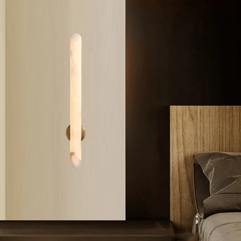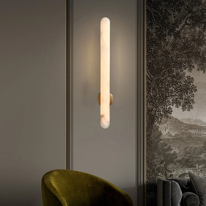 Crafted with a natural alabaster-style finish, this wall light exudes sophistication while diffusing a warm, ambient glow. Its elongated silhouette brings a refined accent to both modern and classic interiors.