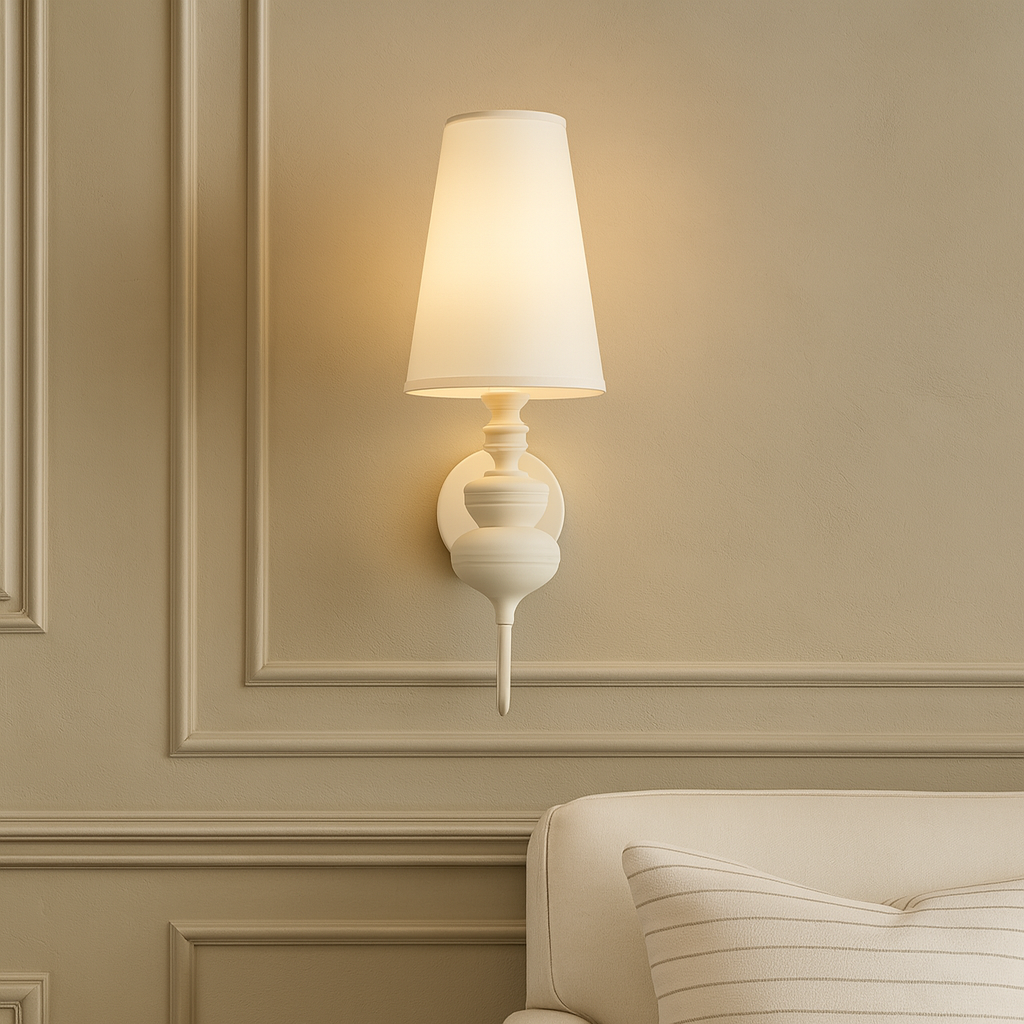 This wall sconce features a refined silhouette with a sleek tapered shade and a sculpted base, bringing sophistication to any room. Perfect for living rooms, bedrooms, or hallways, it combines classic design with modern charm.