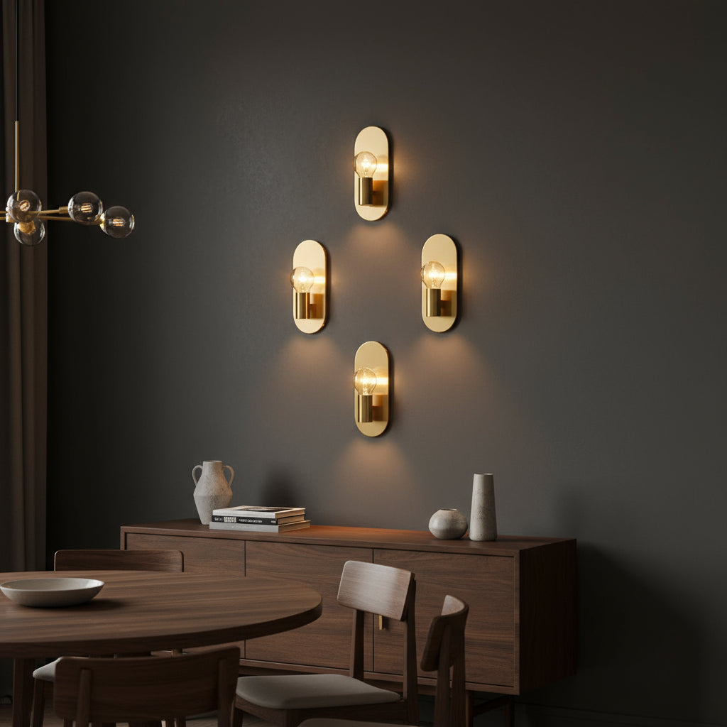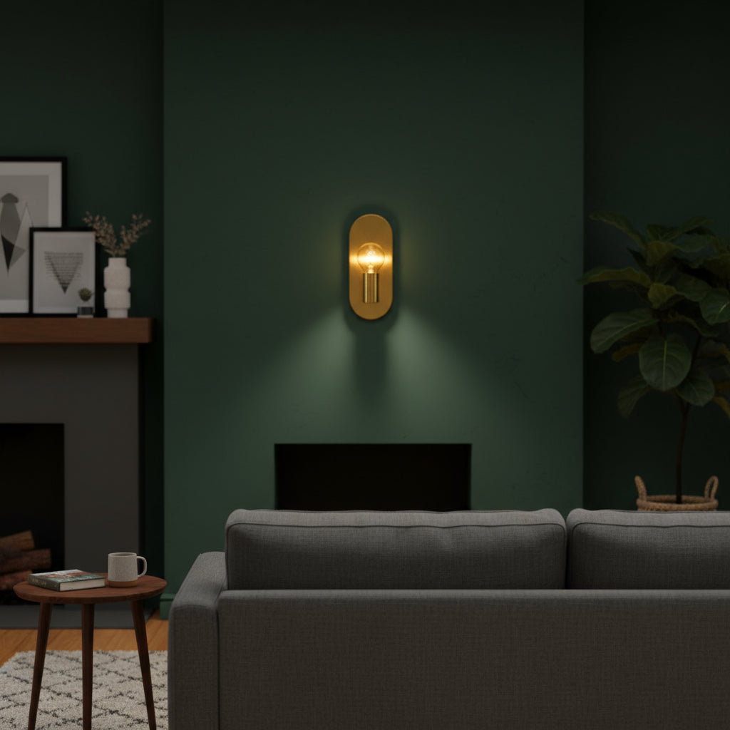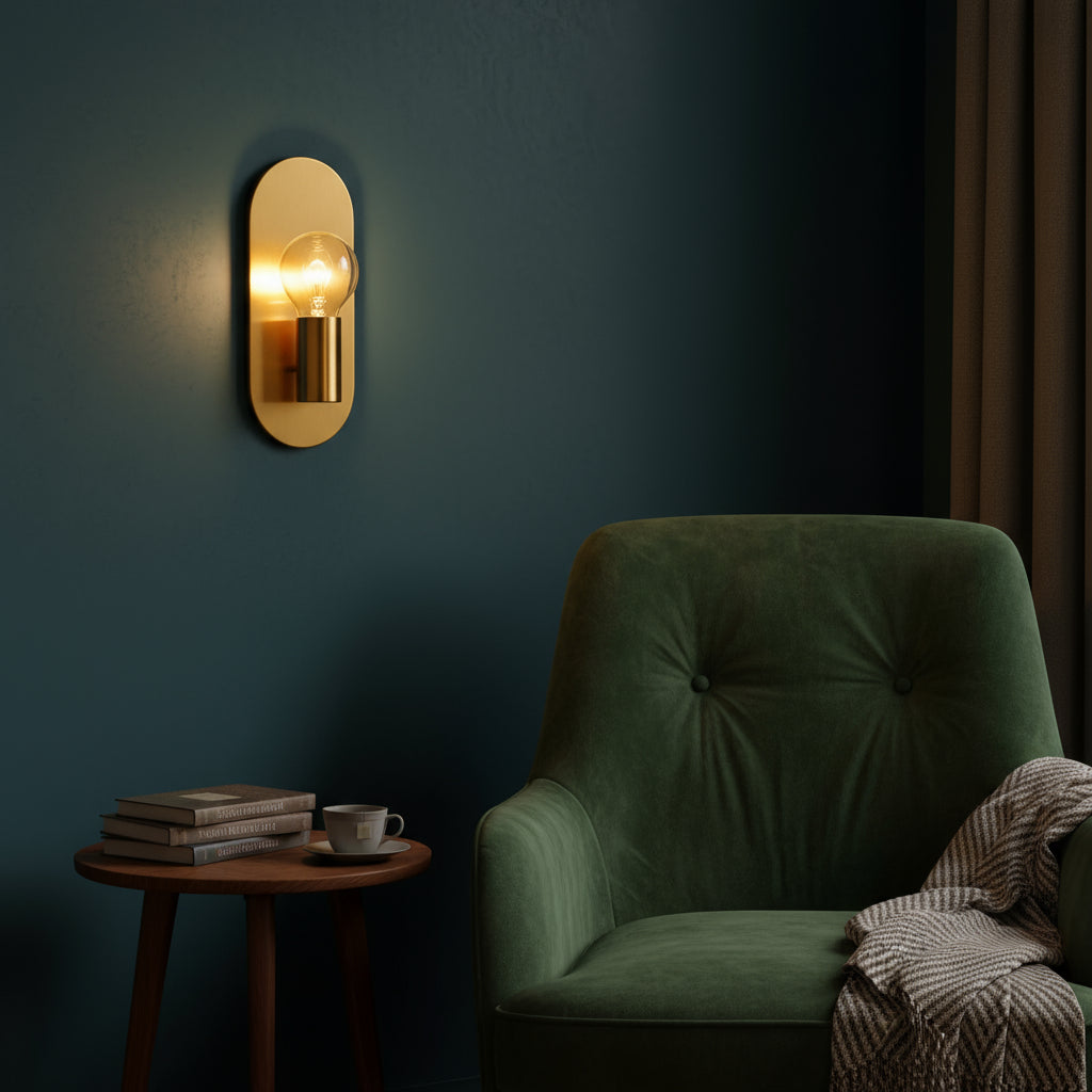 Featuring a sleek brass plate and exposed bulb, it diffuses a soft glow that highlights your walls and elevates every detail of your decor. Perfect in pairs, it adds balance and harmony to any space.