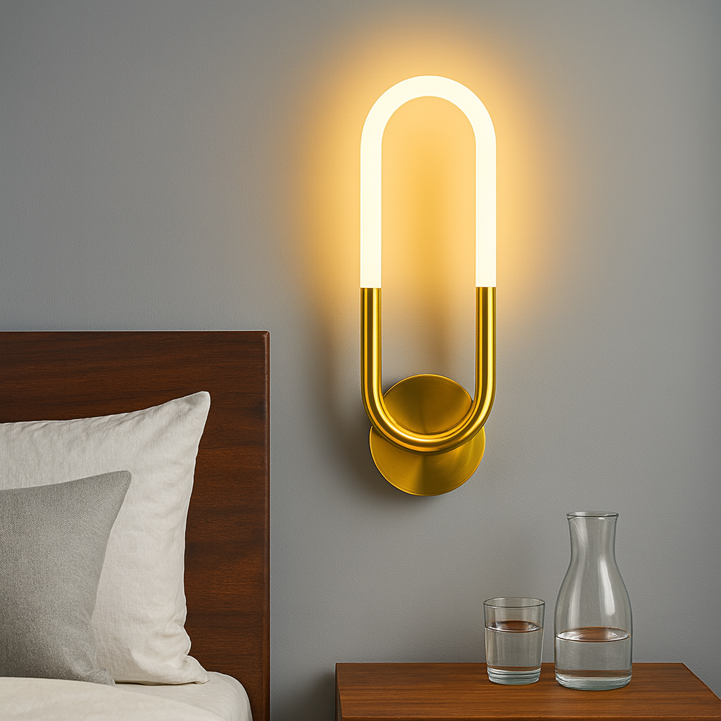 Sleek and contemporary, this brass wall light blends modern design with warm LED illumination. Perfect for bedrooms or hallways, it creates a cozy ambiance while adding a touch of sophistication.