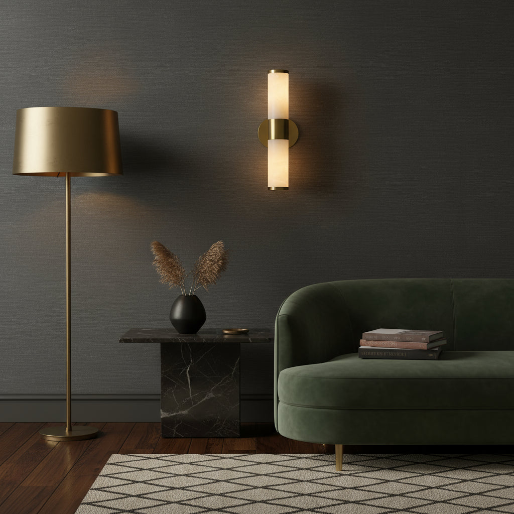 Slim vertical brass design saves space while delivering bright yet soothing light. Perfect for bathrooms, hallways, or modern living rooms.