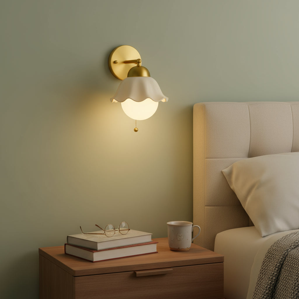 The wavy ceramic shade paired with a warm brass base brings elegance and softness, perfect for brightening up kitchens, living rooms, or cozy reading corners.
