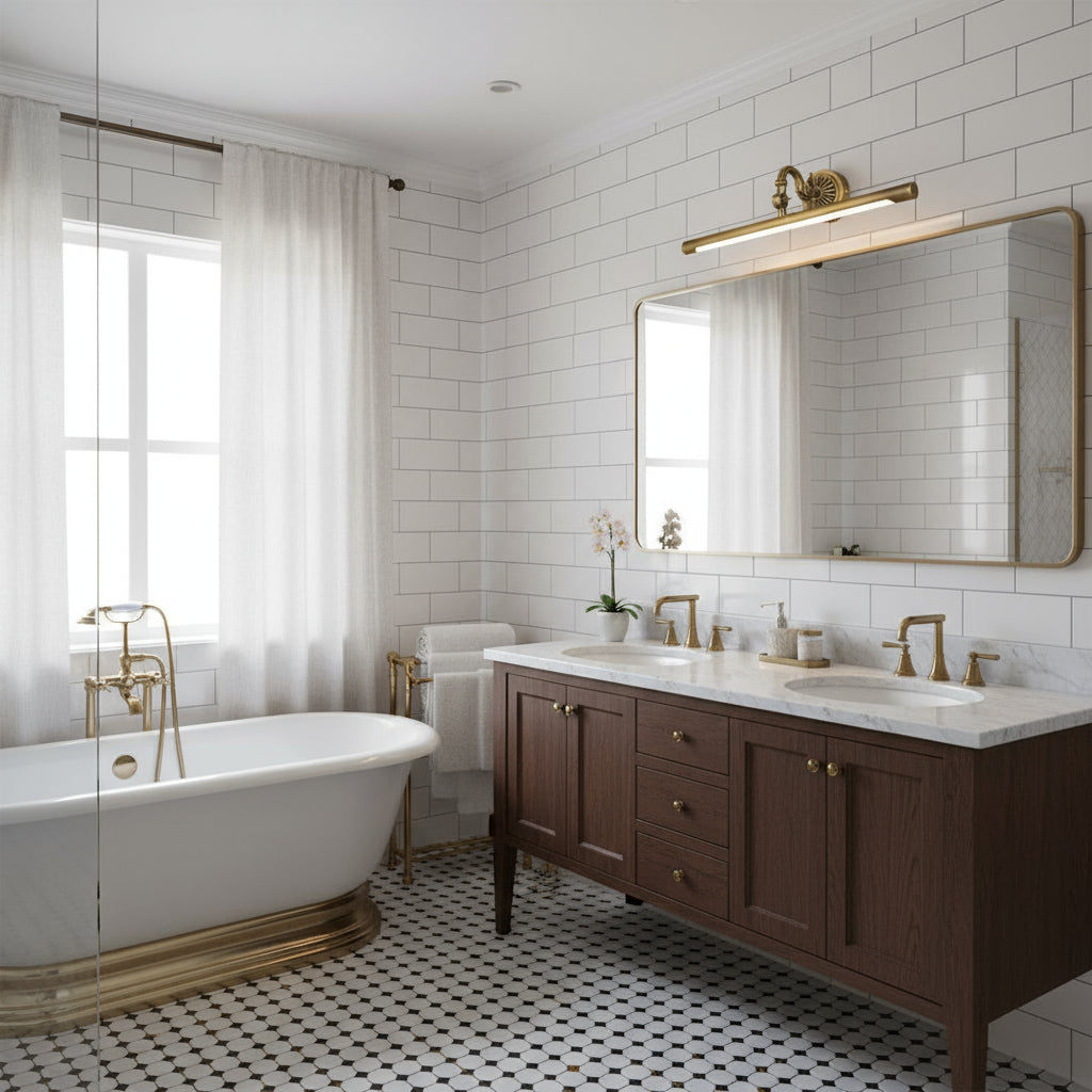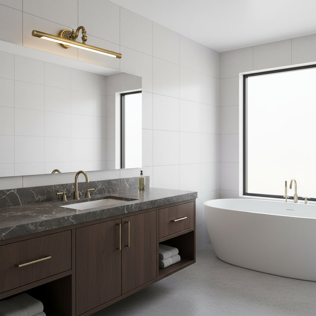 Whether in the bathroom, dressing room, or hallway, this wall light adapts to your needs. It brightens the space effectively while creating a warm and welcoming ambiance.