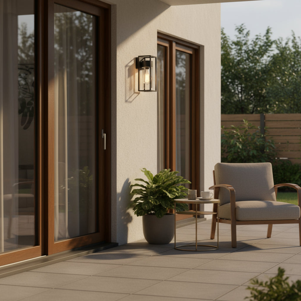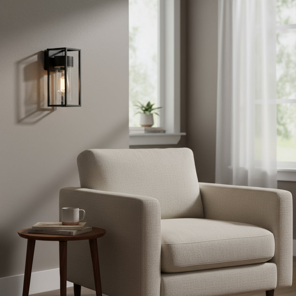 A sleek black wall light with a clear glass shade that spreads a warm glow. Its simple frame adds a refined touch to any room and fits both modern and classic interiors.