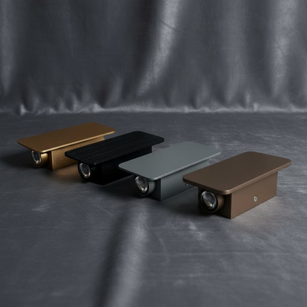 Durable aluminum housing with integrated LED, available in gold, black, silver, and bronze for versatile interior styles.