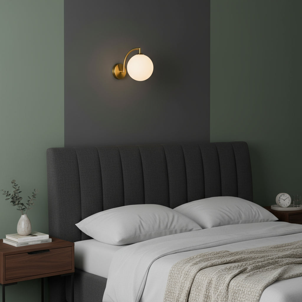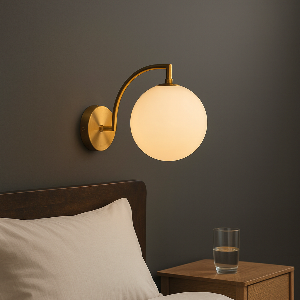 A simple brass arm paired with a clear glass globe creates timeless elegance. Ideal for bedside lighting or living rooms to add cozy sophistication.