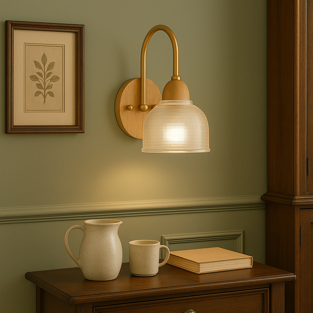 The mix of solid wood and ribbed glass creates a cozy and organic feel, adding warmth and sophistication to your bedroom or living room.