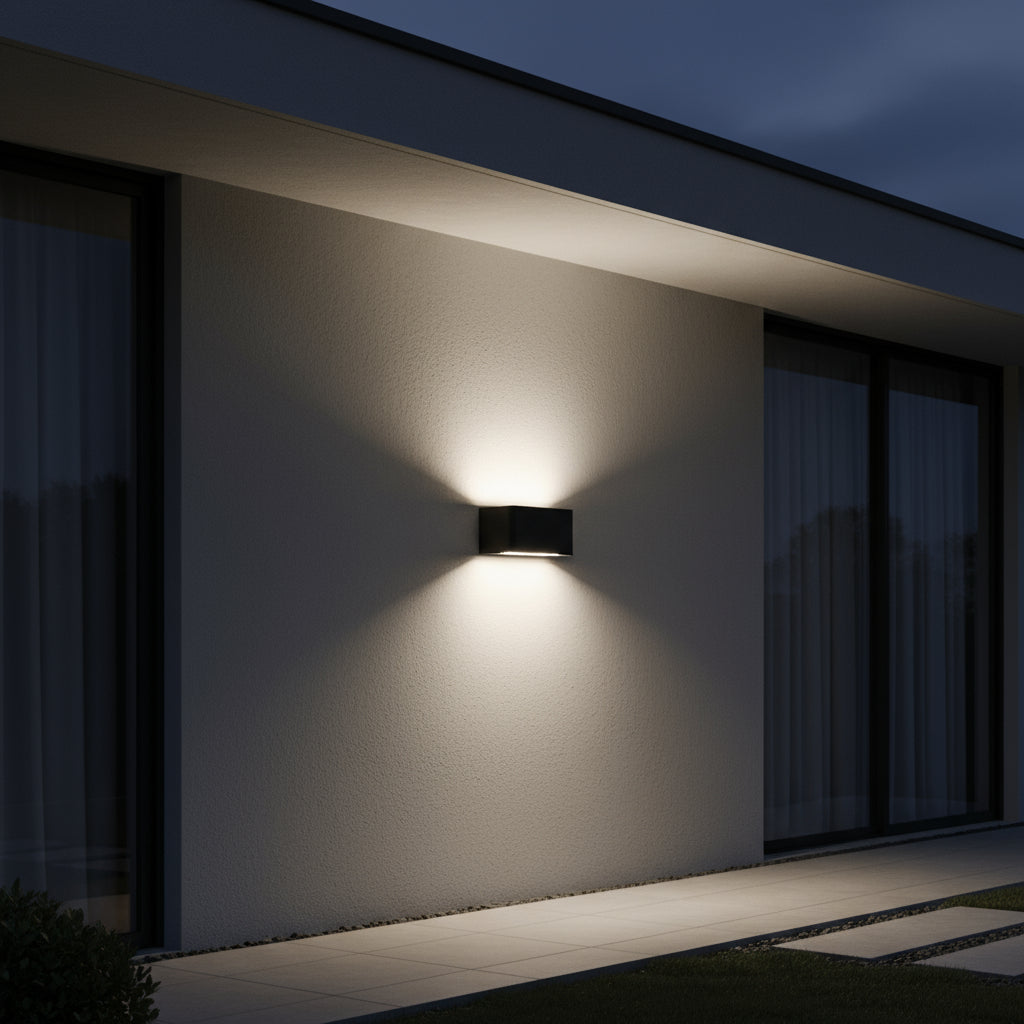 With its minimalist square design, this wall light provides a clean, sophisticated look while casting a welcoming glow along pathways, garages, or patios.