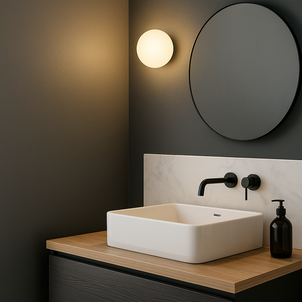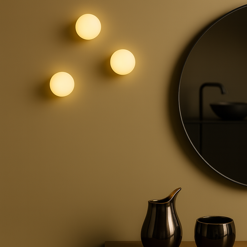 The twin glass globes cast a soft, balanced glow that enhances bathrooms, hallways, or living areas with a touch of minimalist sophistication.