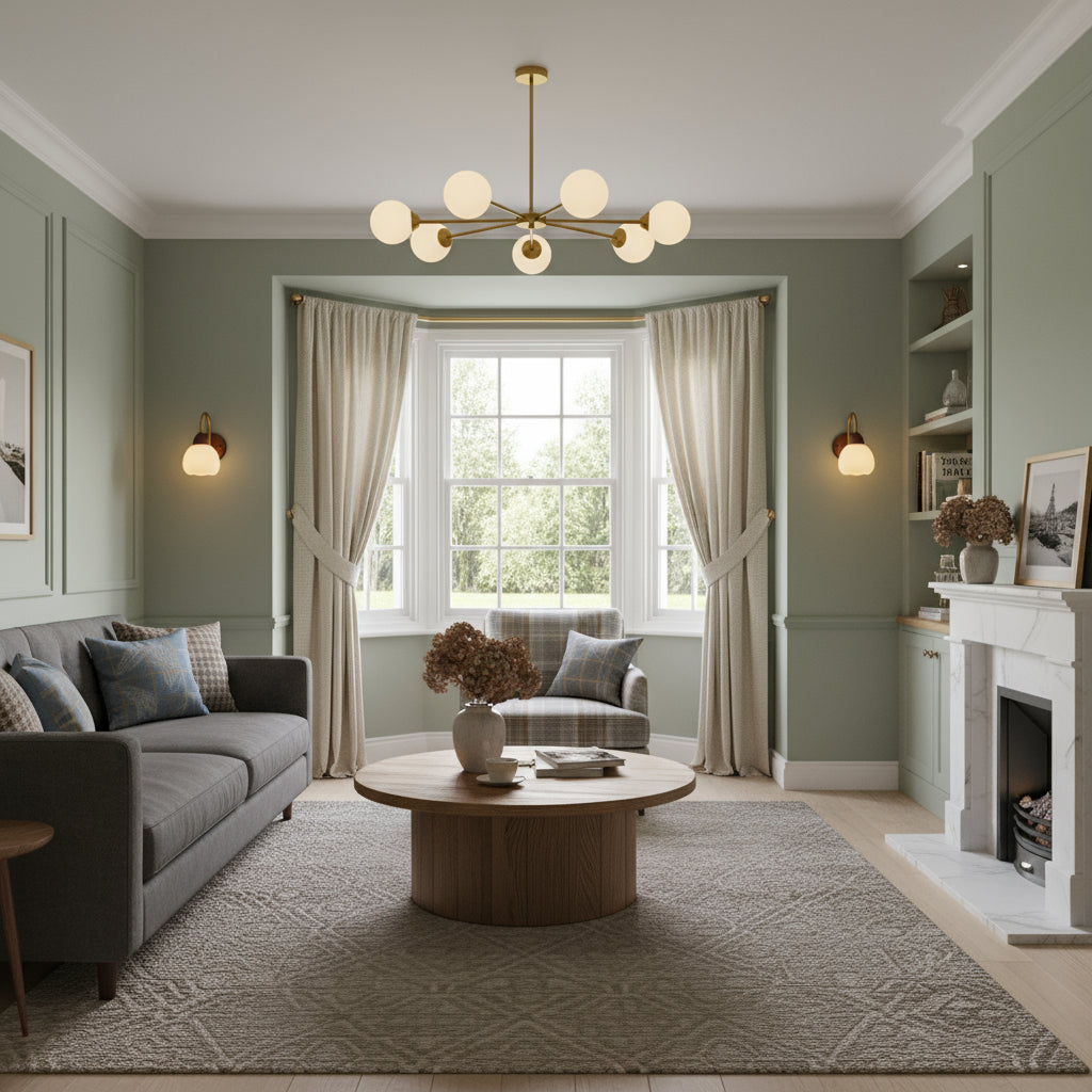 Soft globe wall sconces enhance a serene, modern living space with gentle curves and warm, diffused lighting.